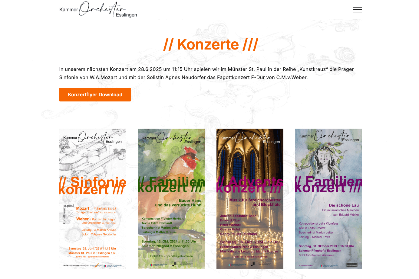 Mit dieser Website erhält das Kammerorchester eine stilvolle und eigenständig betreibbare Plattform, die klassische Musik modern präsentiert – authentisch, durchdacht und mit viel Gefühl für Klang und Gestaltung.